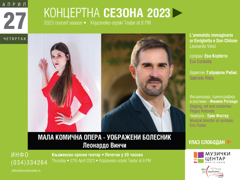 Музички центар Крагујевац, у оквиру концертне сезоне, организује оперу ” Уображени болесник “ која ће бити изведена у четвртак 27. априла 2023. године у 20 часова у Књажевско – српском театру у Крагујевцу.