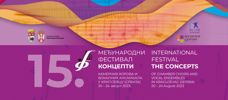 “ Универзални поглед на хорску музику “ - 15. МЕЂУНАРОДНИ ФЕСТИВАЛ КАМЕРНИХ ХОРОВА И ВОКАЛНИХ АНСАМБАЛА КОНЦЕПТИ У КРАГУЈЕВЦУ, 20–24. АВГУСТ 2023.
