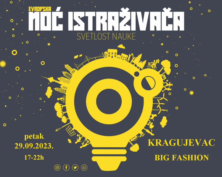 Последњег петка у септембру 29.09.2023. године у 24 града у Србији биће организована 14. манифестација Европска ноћ истраживача, под слоганом "Светлост науке''. Европска ноћ истраживача организује се уз подршку Европске уније, а у Србији се реализује кроз два пројекта: РеФоцус Арт и Сциенцес Цоол. Пројекти су финансирани из програма ,,Хоризон Еуропе’’, највећег програма Европске уније за истраживање и иновационе делатности.